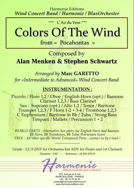 Partitions pour Orchestre Symphonique et Harmonie - Arrangements et Compositions Orchestra & Band - Sheet Music (Score & Parts)